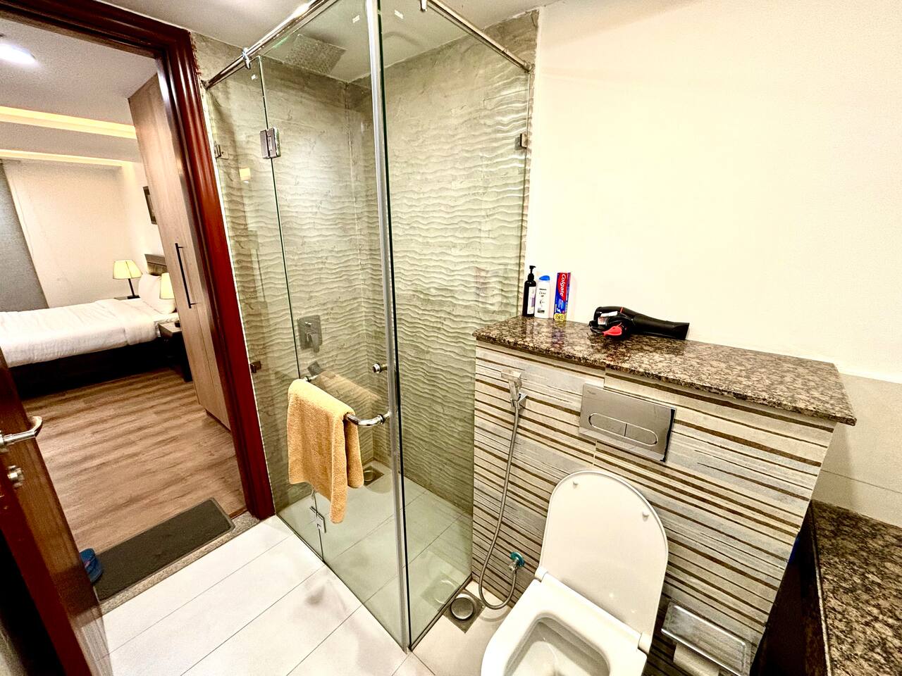 π’ 1-Bedroom Apartment designed with elegance & comfort πΏ 2 Bathrooms β one attached to the master bedroom & one powder room π½οΈ Fully Equipped Kitchen with modern appliances πΊ Smart TV & High-Speed WiFi for seamless connectivity π Smart Lock Installed for a secure & hassle-free check-in π‘ Premium Furnishings with stylish dΓ©cor π Access to Building Amenities like large departmental store Al Fatah and kids play area βπ€π₯―πͺ Famous Restaurants and cafes options at the Mall including Loafology, Bagh, Go Flour, Kebabjees and Pizza Hut. πͺ Premium Gym Oxygym available in the mall.