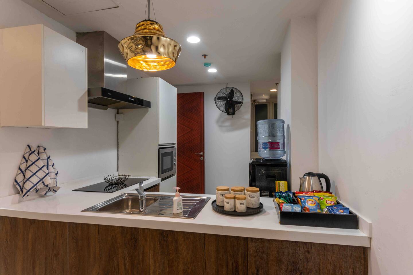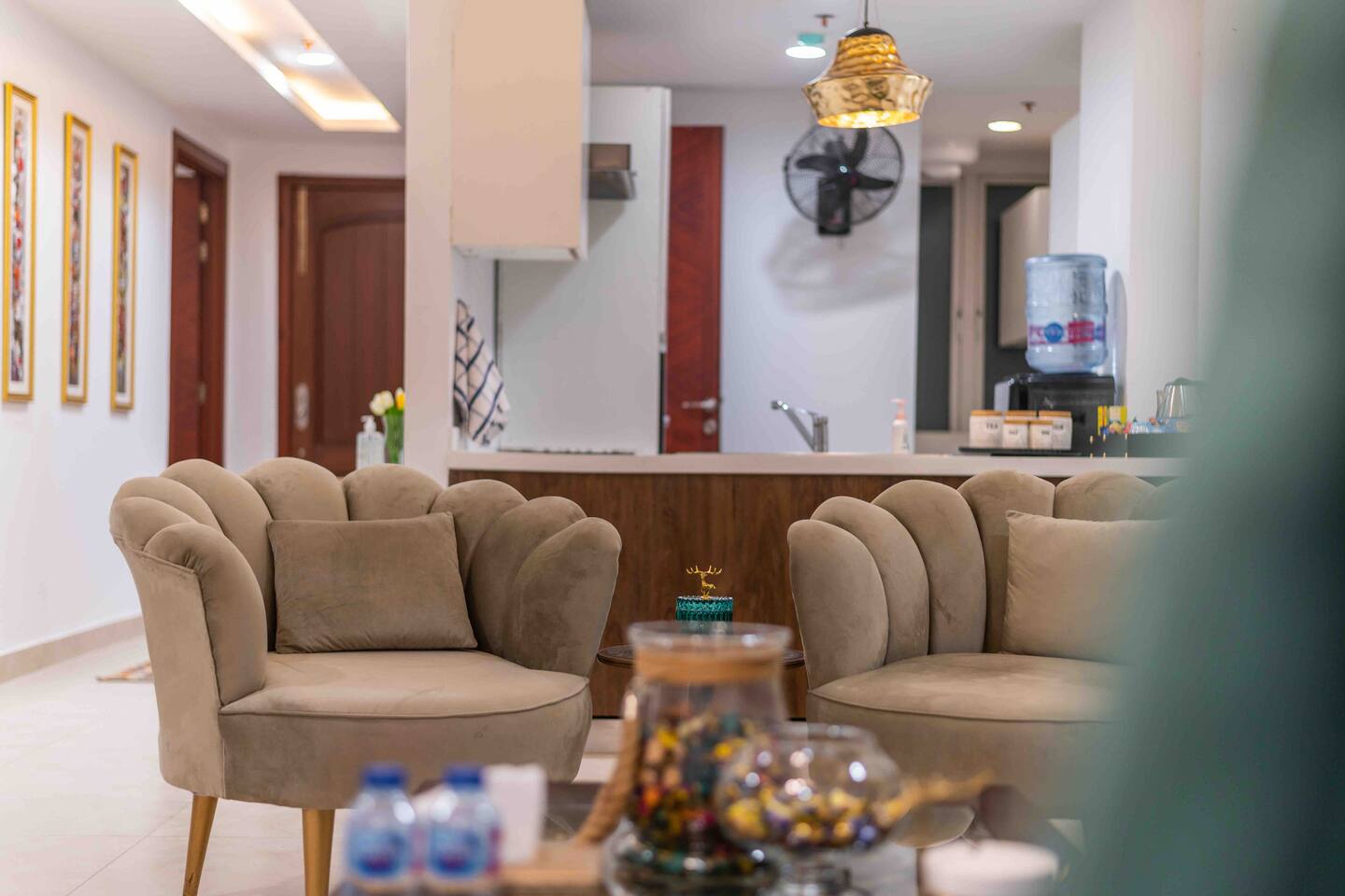 Enjoy a luxury experience at this centrally-located apartment. Our apartment is equipped with all that you will need for your trip to the city! Located at the heart of Defence, with a beautiful park and city view, the building has a 24 hour security watch. Our unit comes with two fully furnished bedrooms and en-suite bathrooms. The open living space and kitchen plan comes with an additional powder room for your ease.
