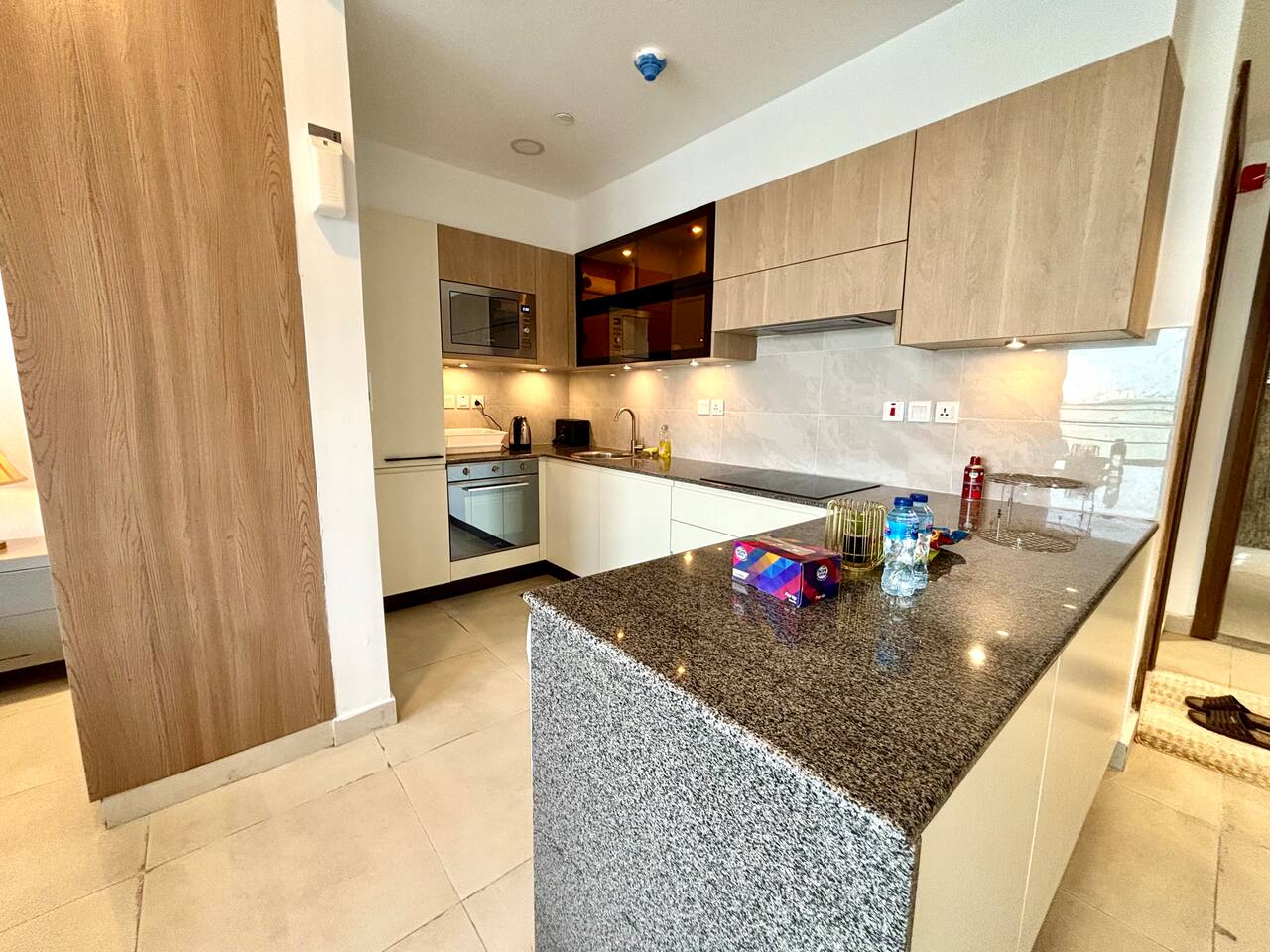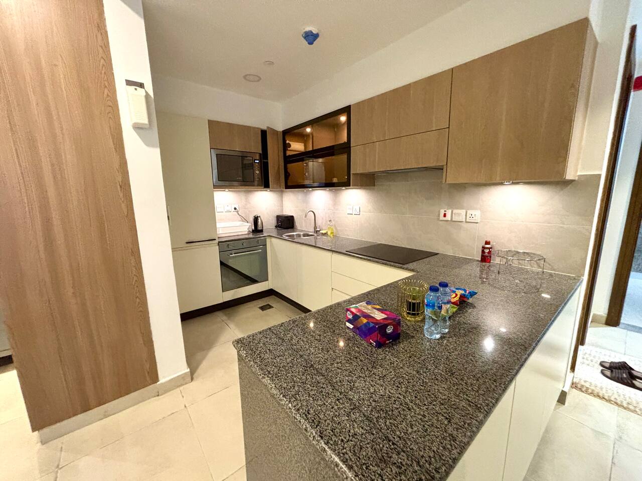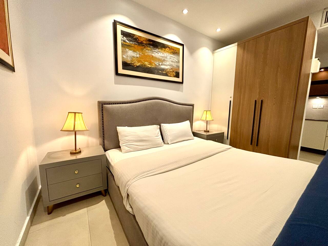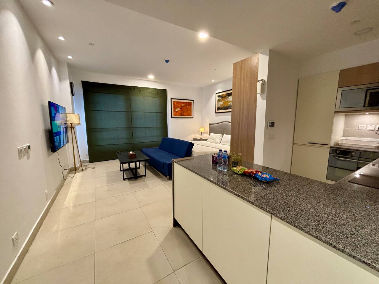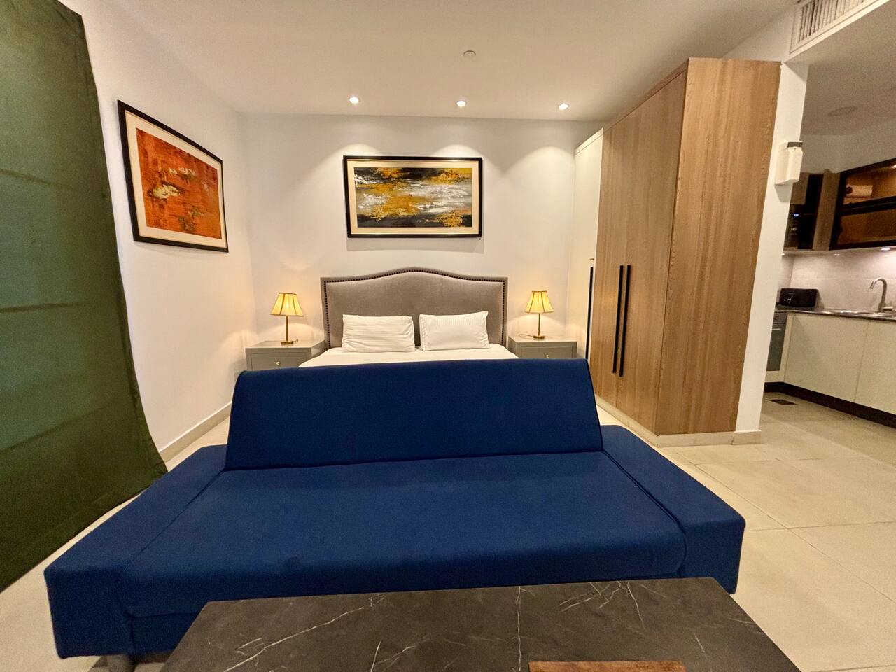 🛏 Studio Layout: Elegant, open-plan studio with a queen-sized bed and plush seating area 🌆 Scenic Views: 7th-floor high vantage point overlooking DHA’s vibrant neighborhood 🍳 Fully Equipped Kitchenette: Includes a microwave, electric stove, refrigerator, and basic cookware 🚿 Contemporary Bathroom: Walk-in shower with premium toiletries and fresh towels ❄ Perfect Climate Control: 24 hour AC and heating system for year-round comfort 📶 High-Speed WiFi: Seamless connectivity for streaming or work 📺 Smart LED TV: Netflix, YouTube, and more 🔒 Smart Lock Security: Hassle-free self-check-in with lox box code