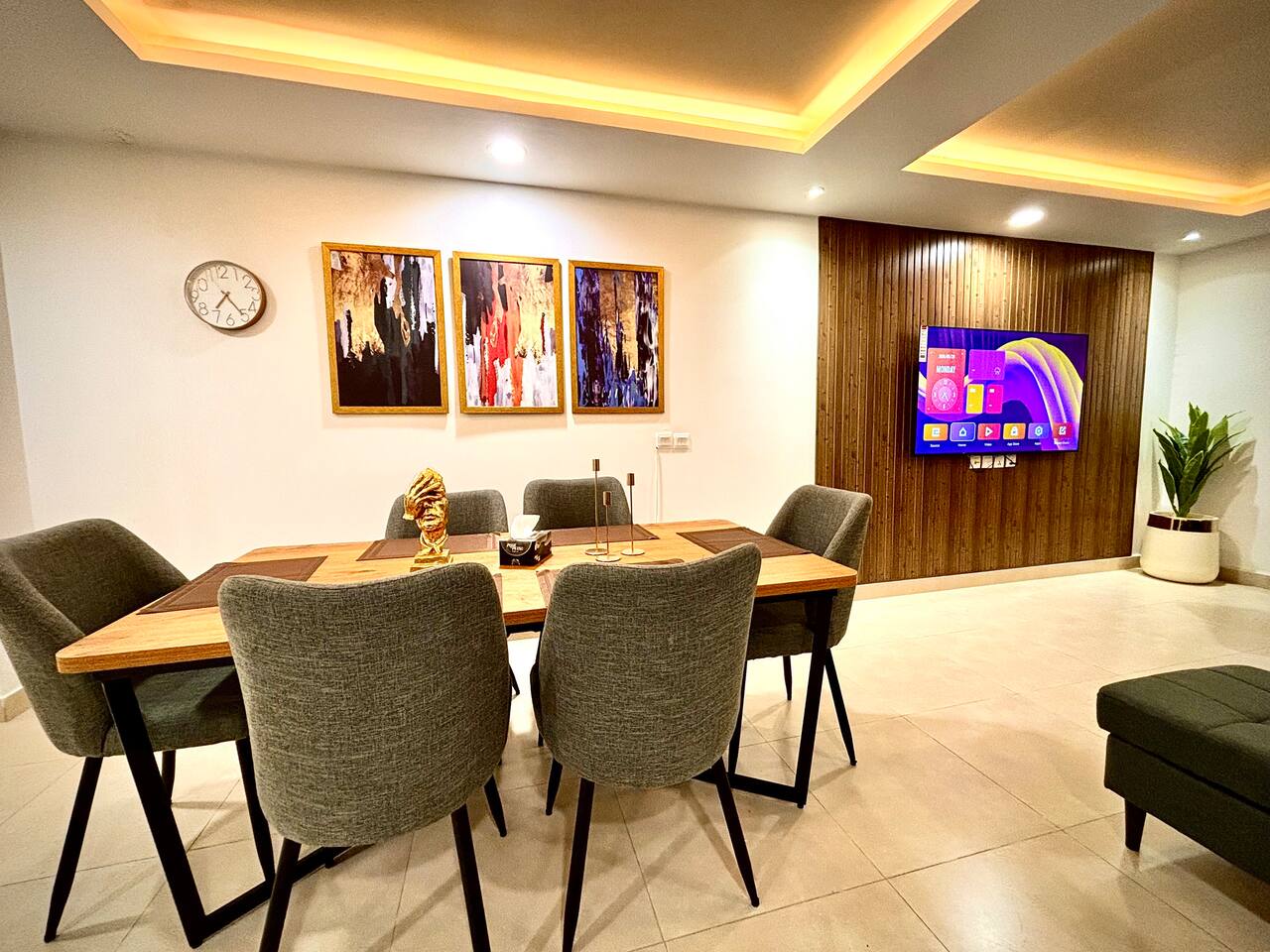 What you'll love: 🛏 2 full bedrooms with comfortable beds and ample storage 🖥 A half bedroom/study room – great for work or an additional guest 🌇 A private balcony with lovely views of the padel and pickleball courts below ⚡ 24/7 power backup – no interruptions, even during outages 🛋 Elegant lounge with smart TV and Netflix access 🍽 Fully stocked kitchen with all essentials for home cooking ❄️ Air conditioning, heating, and high-speed Wi-Fi throughout Whether you’re visiting for work, a family trip, or a relaxing getaway, this penthouse delivers a peaceful and premium experience. 👨💼 The Host We're seasoned Superhosts who pride ourselves on clean, well-maintained spaces and quick responses. Our guest support team is just a message away and always ready to assist before, during, and after your stay. 📍 The Neighborhood Gold Crest Mall is located in the heart of DHA Phase 4, one of Lahore’s most secure and upscale areas. You'll find: ☕ Top cafes and restaurants just steps away 🛍 Shopping outlets and essential stores within the mall 🏋️ Fitness center and salons nearby 🚗 Easy access to key areas of Lahore including Gulberg, Cantt, and Airport This is the perfect base to explore Lahore or settle in for a peaceful extended stay.