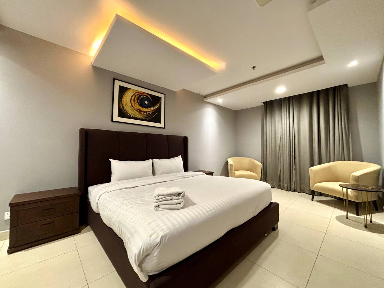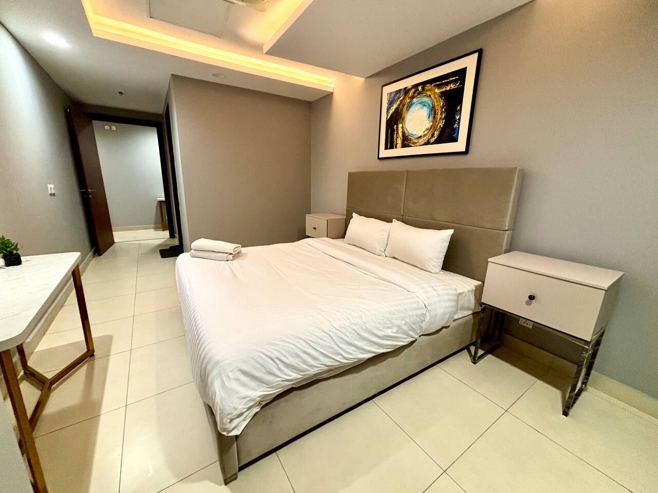 ๐งน Complimentary cleaning every 3 days for long stays. Daily Cleaning Service available on request with a nominal charge ๐ Ride-hailing & Airport Pickup assistance available ๐ Check-in: 3 PM | Check-out: 11 AM ๐ญ No Parties policy As per building management requirements, all guests must first share their ID digitally before arrival, and present the physical ID at the time of check-in. This is a mandatory rule set by the local building management.