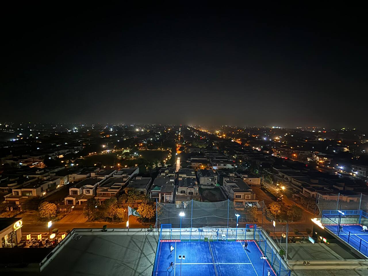 - Luxurious 3-bed apartment on the 11th floor of Gold Crest Mall, DHA Phase 4 - Ideal for families with central location and stunning balcony views - Supermarket and 4 restaurants within the complex, plus a kids' play area - 4 bathrooms for added convenience - Just 15 minutes from Lahore International Airport, ensuring easy travel - Secure and safe neighborhood with 24/7 power backup - Experience upscale living with unparalleled amenities!